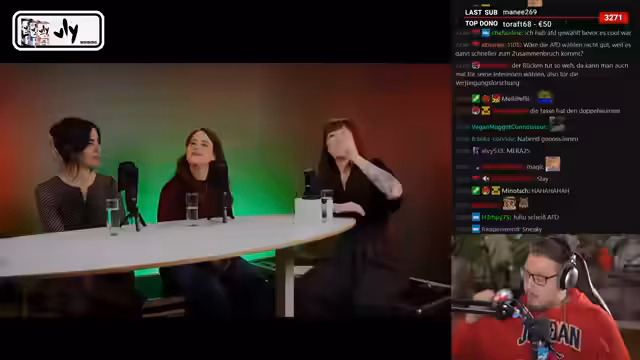 03:28:37Der Streamer kündigt einen Podcast mit Heidi Reichenig (Die Linke), Rasha Nassar (SPD) und Ricarda Lang (Bündnis 90/Die Grünen) an. Er äußert sich kritisch über die rot-rot-grüne Koalition und bemerkt, dass sich die Parteien nur in marginalen Punkten unterscheiden. Gleichzeitig erkennt er den Wert des Formats, um zu zeigen, dass alternative politische Möglichkeiten existieren und nicht nur zwischen AfD und CDU gewählt werden muss.