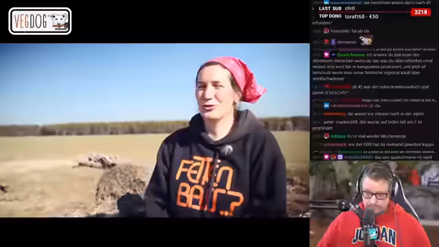 01:21:10Es geht um die Lebensrealität in Ostdeutschland, wo 'nicht einmal jeder Zweite' in der Stadt lebt. Der Streamer beschreibt die Region als 'dünn besiedelt', 'rau' und 'wild' mit ländlicher Struktur. Die wirtschaftlichen Probleme sind evident: bei explodierenden Diesel- und Lebensmittelpreisen hinkten die Löhne hinterher. Es werden strukturelle Probleme wie die Landwirtschaft benannt, bei der 70% der Flächen in westdeutscher Hand sind. Der Streamer spricht mit Anja Koch, einer Landwirte, die trotz 'explodierender Dieselpreise' nicht wütend ist und ihrem Betrieb kämpferisch am Laufen hält.