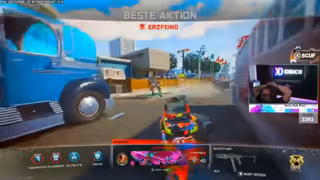 01:58:26Trotzt der anfänglichen Frustration gelingt es dem Streamer in einer Runde, einen "Nuke" (20er Killstreak) zu erzielen. Er ist begeistert von der Performance, die er mit der aktuellen Waffe zeigt, und macht sich über die schlechten Gegner lustig. Die Stimmung kippt deutlich ins Positive, als er den Killstreak absolviert und die Killcam mit seinen schnellen Eliminierungen betrachtet. Dieser Erfolg dient als willkommener Kontrast zu den vorherigen, frustrierenden Runden und bestätigt ihm, dass der getestete PC für das Spiel durchaus tauglich ist.