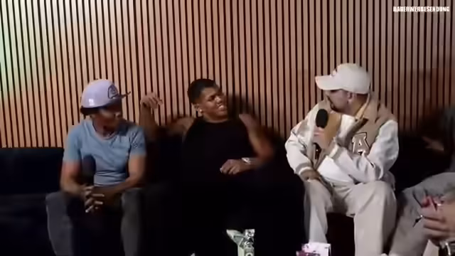 01:13:59Die erste Challenge, "Erkenne den Schwarzen", steht kurz bevor. Zuvor werden Liegestütze als kleine sportliche Einlage gemacht, bei der Nathan überraschend gut abschneidet. Abu verrät seinen richtigen Namen, Jafar. Es wird über die Nervosität vor dem bevorstehenden Rü-Drop um 18 Uhr am nächsten Tag gesprochen und die Kollektion gelobt. Die limitierte Stückzahl und die Diskussion um Pre-Access-Codes werden thematisiert. Es wird erklärt, dass es bei dem Battle darum geht, 10.000 Euro für wohltätige Zwecke zu sammeln. Daniel Schlamm und Chris werden als weitere Gäste begrüßt, die in Mexiko dabei waren. Es wird über die Gefährlichkeit von Mexiko gesprochen und die Erfahrung dort reflektiert.