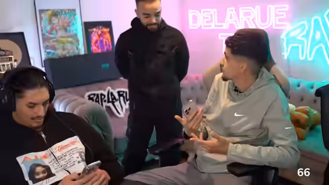 00:37:00Es wird eine Challenge für Ilo und Moskito angekündigt, bei der es um eine noch unbekannte Strafe geht. Es wird die Option eines Split-or-Steal-Deals erklärt, bei dem sich beide die Strafe teilen können oder einer alles tragen muss. Moskito soll etwas opfern, weil er kein Geschenk mitgebracht hat. Es wird eine Geschichte über ein vergessenes Geschenk für die Tochter des Streamers erzählt. Ilo hat zugesagt, Special Guest auf der Tour in München zu sein und Dardan in Stuttgart, sofern nichts dazwischenkommt. Es wird über den Song 'Wehrmacht Para 1' gesprochen, bei dem Enno den Namen Delarue erfunden hat. Ilo gibt sein Alter nicht bekannt und deutet ein geheimes Projekt an.