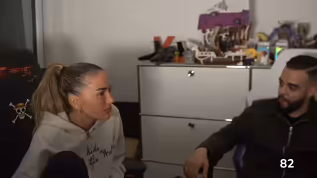 01:36:12Loredana begrüßt ihren Gast Karim im Stream. Die beiden unterhalten sich über verschiedene Themen, darunter Fußball und frühere Lebenserfahrungen. Karim erzählt von seiner Karriere als Fußballspieler und seinen Träumen, professionell zu werden. Die beiden tezen sich freundlich und erzählen lustige Geschichten aus ihrer Vergangenheit. Anschließend organisieren sie ein Pärchenspiel, bei dem sie testen, wie gut sie einander kennen. Loredana zeigt sich begeistert von der Interaktion mit dem Chat und ihrem Gast.