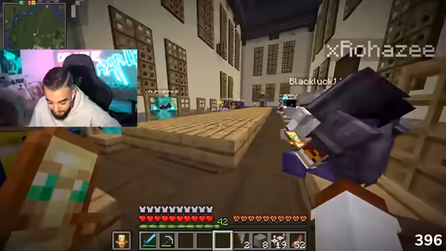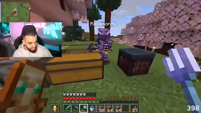 05:46:26Der Streamer wechselt kurz zu Fortnite, um den Skin 'Playboy Cardi' zu bewerben und ermutigt die Zuschauer, ihn mit einem Creator-Code zu kaufen. Zurück in Minecraft wird die Zusammenarbeit mit 'Rose' fortgesetzt: Sie schenkt dem Streamer eine Nether-Hose und Werkzeuge, während er im Gegenzug Sand für TNT sammelt. Es gibt Pläne, gemeinsam eine XP-Farm zu nutzen, und der Streamer erhält Tipps zur Reparatur von Ausrüstung mit Smaragden. Ein Konflikt mit 'Sergen' wird angesprochen, der den Chat unterhalten soll, während der Streamer isst.