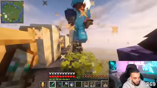 00:34:22Während des langen Streams zog der Streamer parallel seine Projekte durch. Er erwähnte, dass er und seine Mitstreiter Abel und Randy die finalen Listen für 'Rapplerü' durchgehen und die Top 100 noch bestätigen würden. Gleichzeitig gab er einen Einblick in sein Minecraft-Projekt 'FitnaCraft', wobei er auf technische Probleme mit den Shadern hinwies. Trotzdem präsentierte er stolz seine gebauten Strukturen und tauchte tiefer in das Gameplay ein, was den Fokus des Streams abwechselnd auf die Community-Unterstützung und seine kreativen Projekte lenkte.