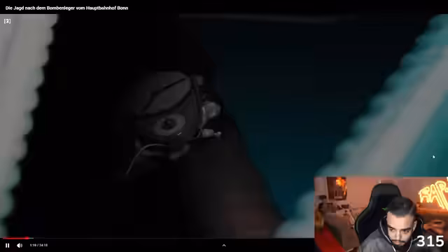 05:49:22Nach dem Fortnite-Teil fragt der Streamer sein Publikum per Abstimmung, welchen Content sie als Nächstes sehen möchten. Zur Auswahl stehen Videos wie „Pumping Monkey“, ein Date-Video oder eine Dokumentation über den Anschlag in Bonn. Nach einer kurzen Diskussion entscheidet sich die Mehrheit für die Dokumentation über den gescheiterten Bombenanschlag am Bonner Hauptbahnhof im Jahr 2012. Bevor das Video startet, wird kurz die rechtliche Seite des Ansehens auf Twitch geklärt und die Moderatoren werden gebeten, eine Umfrage zu erstellen. Schließlich beginnt die Wiedergabe der Reportage, die die Ereignisse rund um die Tasche mit der Rohrbombe detailliert schildert.