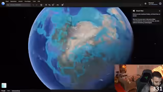 07:37:25Während die Google Earth-Erkundung beginnt, treten technische Probleme auf. Streamer und Community kämpfen mit der Bedienung der Software und der Darstellung. Trotzdem beginnt die Erkundung mit dem Jemen und Marokko, wobei die Zuschauer angewiesen werden, mitzuhelfen, die Navigation zu steuern und die Länder zu bewerten.