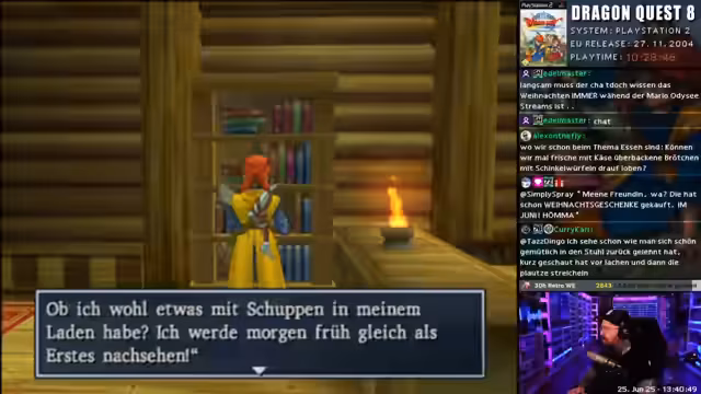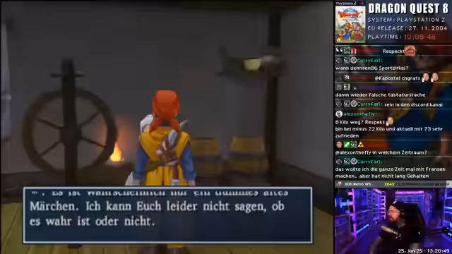 00:00:14Der Streamer beginnt mit seiner ersten Begegnung in Dragon Quest 8 und stößt auf eine knifflige Situation mit Treppen und Sprüngen. Er zeigt sich frustriert über die ungewöhnliche Kameraführung und die Menünavigation. Dabei kritisiert er speziell die Tastenbelegung, die ihm Schwierigkeiten bereitet und ihn wütend macht. Der Streamer erwähnt auch technische Aspekte wie die 50-Hertz-Grafik auf dem Bildschirm.