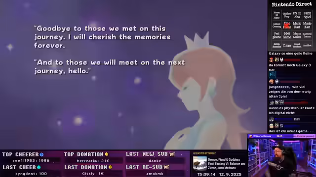 03:16:09Es werden Details zum Super Mario Galaxy Film genannt, darunter die Rückkehr von Chris Pratt als Mario, Anya Taylor-Joy als Princess Peach, Charlie Day als Luigi und Jack Black als Bowser. Es wird gehofft, dass auch Spiele angekündigt werden. Super Mario Galaxy 2 wird im Abo erwartet. Es wird diskutiert, ob es den zweiten Teil schon gibt oder nicht. Es wird bestätigt, dass es nur Teil 1 in der Collection gibt. Der zweite Teil soll am 2. Oktober als digitale Version erscheinen. Ein neuer Amiibo wird angekündigt. Es wird überlegt, ob es den zweiten Teil auch digital geben wird. Es gibt zwei Titel, die Marius zu sehen sind. Es werden neue Bilderbuchseiten hinzugefügt. Es wird diskutiert, dass es komisch ist, dass sie eine Collection mit Sunshine und 64 und 1 rausbringen und dann nochmal eine Collection mit Galaxy wieder mit 1 und 2.