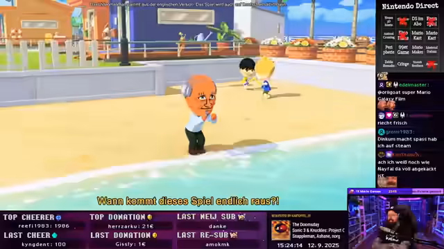 03:05:42Die Nintendo Direct startet mit einem Countdown. Der erste große Fokus liegt auf der Ankündigung eines neuen 'Super Mario Galaxy'-Films von Illumination, mit Chris Pratt als Mario und Jack Black als Bowser. Anschließend kündigt Nintendo die 'Super Mario 3D All-Stars + Galaxy Collection' für den 17. Oktober an, die die Spiele 'Super Mario 64', 'Sunshine' und 'Galaxy 1 & 2' enthält. Der Streamer ist beeindruckt, besonders von der Ankündigung von 'Galaxy 2'.