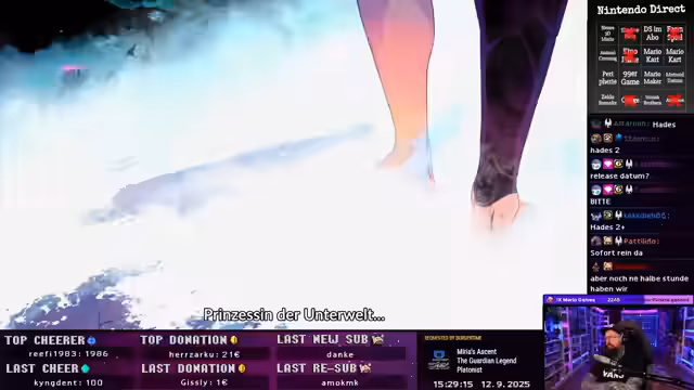 Zuerst Deadly Days, dann Borderlands mit Nathal, inklusive Charaktererstellung. Im Anschluss wird gemeinsam die Nintendo Direct verfolgt, mit Bingo-Spiel. Erwartungen an neue Mario-Ankündigungen zum 40. Geburtstag. Itemsuche und Herausforderungen in Deadly Days, taktische Überlegungen und Vorbereitung auf Borderlands.