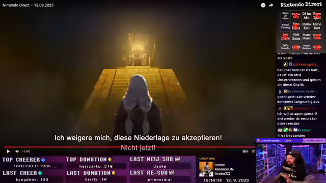 03:06:14Es gibt immer noch Tonprobleme, aber es wird versichert, dass daran gearbeitet wird. Die Streamer wundern sich, warum Nintendo keine Musik abspielt, obwohl sie eine eigene Music-App haben. Es wird spekuliert, dass es gleich eine Überraschung mit extremer Lautstärke geben wird. Ein Shared Hype Train wird bemerkt, der durch gemeinsame Streams entsteht und Emotes für beide Chats freischaltet. Es wird über die Prozentzahl des Hype Trains diskutiert und Kritik daran erwähnt. Die Alerts werden stummgeschaltet, um nicht von der Präsentation abzulenken. Es wird gehofft, dass der Start der Präsentation nicht zu laut ist. Es wird spekuliert, dass Cringe schon im Intro vorhanden ist. Es wird über Discord gestreamt, aber es gibt Lags. Es wird gehofft, dass es nicht nur Ankündigungen zum Mario-Film gibt, sondern auch Spiele. Der Super Mario Galaxy Film wird erwähnt.