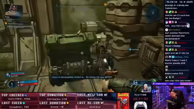 04:43:08Es werden erste Erfahrungen mit dem neuen Kammerjäger in Borderlands geteilt, wobei zunächst die Orientierung und das Verständnis der Skills im Vordergrund stehen. Eine neue Spritze, die Verbündete heilt, wird gefunden und ausprobiert. Die vorhandenen Skills werden erkundet, wobei die Entscheidung zwischen verschiedenen Skillbäumen, wie Äxte, Schild oder Elementarschaden, abgewogen wird. Die Wahl fällt zunächst auf die Äxte, um Schaden zu maximieren. Es wird festgestellt, dass der Action-Skill jederzeit gewechselt werden kann. Belohnungen für das Öffnen von Kisten und Menüs werden entdeckt, darunter optische Anpassungen und eine Waffe. Ein zusätzlicher Skillpunkt wird vergeben und in die Verbesserung der Äxte investiert. Die Funktionsweise des gewählten Skills wird getestet, wobei Feuer-Damage hinzugefügt wird. Granaten haben einen Cooldown. Die Äxte werden eingesetzt, um Gegner gefangen zu nehmen und Schaden zu verursachen, während man selbst ein Schild erhält. Feuer und Eis als Elemente werden als passend empfunden.