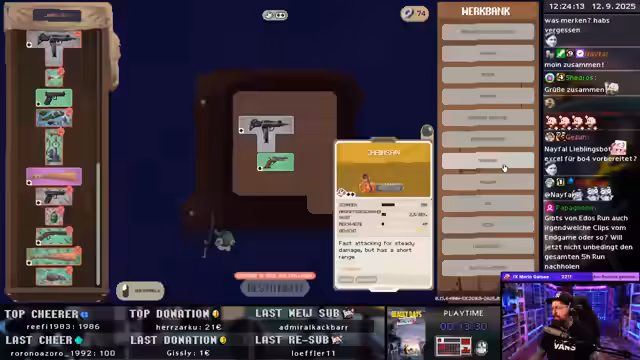 00:17:16Im Fokus steht der Versuch, den Charakter 'Reaper' freizuspielen, der benötigt, dass man 12 Minuten in einer Welle überlebt. Der Streamer analysiert seine Ausrüstung, die hauptsächlich aus einer Pistole besteht, und entscheidet sich, Upgrades wie einen Feuerwerfer zu bevorzugen, um eine effektive AOE-Fläche zu schaffen. Er betont die Wichtigkeit von Platz im Inventar und einer großen Karte für den langen Überlebensversuch und sammelt daher intensiv Beute.