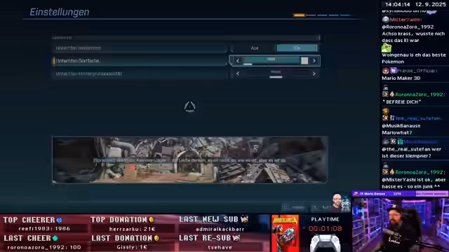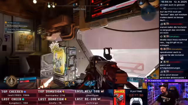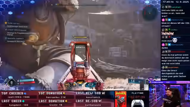 05:52:54Ein Event mit Mario-Kram wird für Ende des Monats angekündigt, obwohl der Streamer das Wochenende online verbringt. Entführung und Enthüllungen werden als Thema der aktuellen Quest genannt. Es wird eine Belohnung abgeholt, aber die Waffe gefällt nicht. Es wird festgestellt, dass die X-Taste beim Gleiten nicht gehalten werden muss, was das Zielen erleichtert. Es wird eine andere Waffe ausgerüstet. Es wird festgestellt, dass Order-Waffen das Aufladen gemeinsam haben. Ein Shortcut zur Map wird entdeckt. Es wird versucht, Sachen zu erkunden und eine andere Waffe zu finden, da die Charge-Waffe als unbrauchbar empfunden wird. Das Charge wird als störend empfunden. Das Spiel wird als schwer empfunden. Eine andere Waffe wird gefunden, die mehr Spaß macht. Es wird versucht, zu verstehen, was gerade Phase ist und wo man hin muss. Der Schwierigkeitsgrad ist auf Koop eingestellt. Die Performance wird als schlecht empfunden, selbst auf einer PS5 Pro. Das Spiel wird neu gestartet, um die Mission zu verfolgen. Das illustre Ei soll beschafft werden. Das Spielgefühl wird als trashig empfunden.