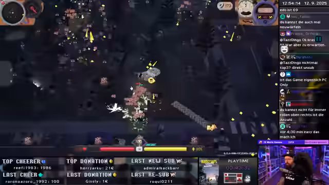 00:35:44Es wird nach bestimmten Items wie einem Bohrer und einem Messer gesucht, um die Kettensäge auszuprobieren. Zudem wird versucht, den Reaper-Charakter freizuschalten, indem die Herausforderung, 12 Minuten in einer Wave zu überleben, gemeistert wird. Es wird überlegt, welche Strategien und Upgrades dafür am besten geeignet sind. Es wird festgestellt, dass es schwierig ist, ohne Heilung lange zu überleben. Es wird der Plan gefasst, die nächste Runde auf das Überleben zu fokussieren und dafür entsprechende Items und Upgrades zu sammeln. Es werden verschiedene Builds und Items diskutiert, um in den Waves zu bestehen und die 12 Minuten zu überleben.
