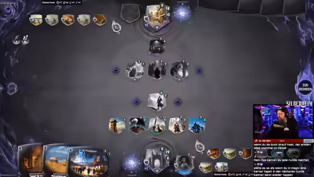 03:14:11Nach mehreren Runden und trotz guter Fortschritte erleidet der Streamer eine knappe Niederlage. Ein entscheidender Fehler war, eine gegnerische Einheit mit 'Selbstlos' nicht rechtzeitig zu beseitigen, wodurch der gegnerische Held ins Spiel kommen konnte und den Sieg heraufführte. Trotz der Niederlage wertet der Streamer das Spiel positiv aus. Er analysiert seine Fehler und betont, dass das tiefe Regelwerk und die Lernkurve des Spiels faszinierend sind, auch wenn manches 'learning by doing' erforderlich ist.