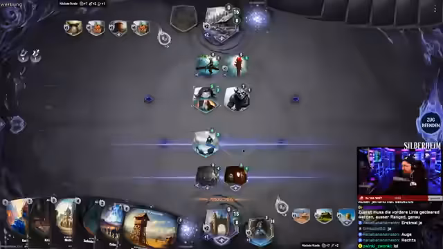 02:27:07Der Streamer navigiert den Zuschauern zur Beta-Registrierungsseite von Silberheim und stellt sicher, dass der korrekte Link genutzt wird, da es scheinbar nur eine offizielle Quelle für den Zugang gibt. Nach einigen technischen Schwierigkeiten beim Einloggen und dem Verständnis der Seite gelangt er ins Spiel. Er beginnt mit einem Deck, das als Aggro-Deck beschrieben wird, und setzt sich mit den grundlegenden Spielmechaniken auseinander, wie dem Aufbau von Einheiten in Angriffs- und Verteidigungsreihen, der Nutzung von Ressourcen wie Metall und Moral sowie dem ziehen von Karten.