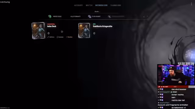 02:02:38Die langen Versuche an den schwierigeren Punch-Out-Achievements führen zu technischen Schwierigkeiten und Frustration. Der Streamer kündigt einen Cut an, da der Zeitplan nicht mehr eingehalten werden kann und er das Spiel zu Ende machen möchte. Nach einer kurzen Pause wechselt der Stream wie angekündigt zum gesponserten Slot und startet Silberheim. Er nutzt einen neuen Account, da die Registrierung des alten fehlschlägt, und beginnt in einem Übungsmatch, um die grundlegenden Mechaniken des digitalen Kartenspiels zu erklären.