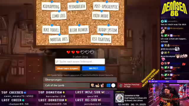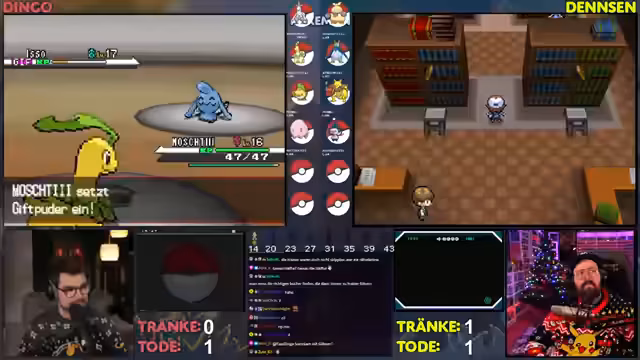 03:05:11Der Streamer kämpft sich durch Pokémon Schwarz Soullink, wobei er sich über die Einschränkung ärgert, nur noch Ratzefratz benutzen zu dürfen, da Moshty nicht mehr verfügbar ist. Nach einem vermeintlich leichten Kampf gegen Nokchan, der unerwartet einfach war, folgt ein Plasma-Fight, der keine Ruhe lässt. Die Überflutung-TM erweist sich als nutzlos, da das passende Wasser-Pokémon nicht mehr im Team ist. Ein Doppelkampf mit nur einem Pokémon stellt eine weitere Herausforderung dar, und die Angst vor Feuer-Pokémon ist groß. Trotz einiger Rückschläge, wie dem Verlust von Dingo, bleibt der Streamer optimistisch und plant bereits den nächsten Run, wobei er über Regeländerungen nachdenkt, um die Überlebenschancen der Pokémon zu verbessern.