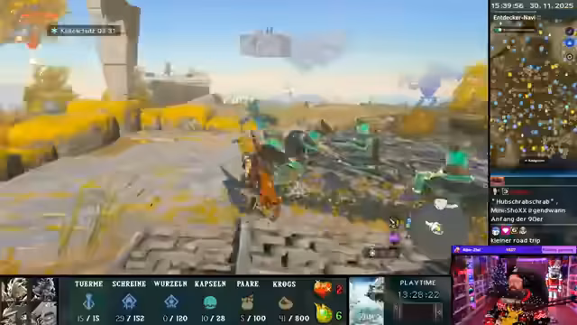 04:29:59Der Streamer kämpft sich durch einen schwierigen Schrein, der ein „nacktes Überleben“ erfordert und in dem er mit Feuer-Gegnern zu kämpfen hat. Trotz der Schwierigkeiten findet er den Dungeon cool und erhält eine Leuchtmedizin. Er konzentriert sich darauf, die restlichen Teile des Aerodynamik-Sets zu sammeln, um die Bewegungsgeschwindigkeit zu erhöhen, insbesondere im Sturzflug. Die Schleichen-Rüstung wird als beste Rüstung gelobt. Er entdeckt ein Konstrukt, das ihm die Fähigkeit verleiht, einmal Erschafftes sofort wiederherzustellen, was er als „Macht der Götter“ bezeichnet. Diese Fähigkeit wird sofort getestet, indem er kaputte Fahrzeuge repariert, was ihn begeistert und als sehr nützlich für den Bau von Flugobjekten einschätzt.