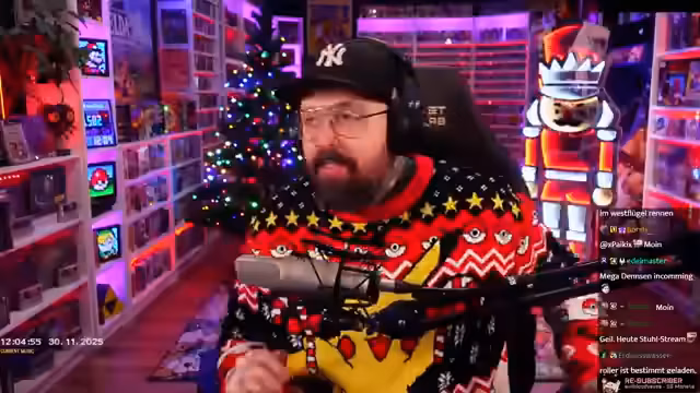 00:23:32Der Streamer kündigt an, einen Pokémon-Pulli zu tragen, um in die richtige Stimmung für den Stream zu kommen, und erwähnt, dass er sonntags Weihnachtspullis tragen möchte. Er bedankt sich bei einem Supporter für den T3-Sub und teilt mit, dass der Adventskalender für das erste Türchen bereit ist, ihm aber noch eine Kordel fehlt. Er äußert seine Begeisterung für Pokémon Schwarz und das neu fertiggestellte Tears of the Kingdom Overlay, welches übersichtlicher und schöner sein soll. Er erwähnt auch, dass er den Schwarzwaldmilchkakao wiedergefunden und direkt zwei Packungen gekauft hat.