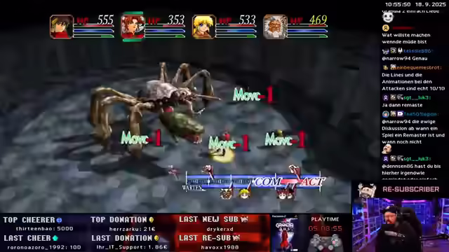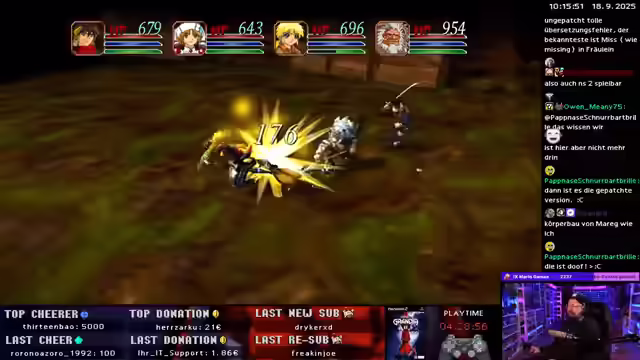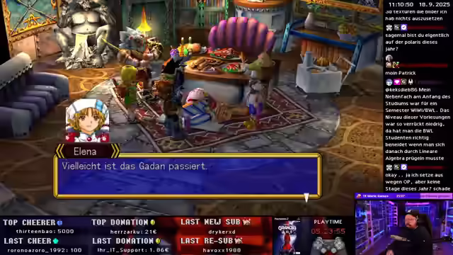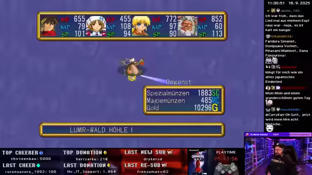 00:17:29Es wird angekündigt, dass Dansen um 14:30 Uhr nach Hamburg zu RBTV Home fährt, wo er am Abend spielen wird. Zuvor hat er den Stream mit der Grandia 2 HD Collection gestartet, die er gestern bereits gespielt hat und als "super cool" empfand. Abhängig vom weiteren Verlauf des Streams könnte er das Spiel wechseln, was aber noch nicht feststeht. Die HD Collection wird gespielt, da es die einzige schnell verfügbare deutsche Version ist, obwohl er die Dreamcast- oder PS2-Version bevorzugt hätte. Er zeigt sich sehr angetan von Grandia 2 und lobt, dass es ihn "echt abgeholt" habe. Er erklärt, dass die Dreamcast-Version nur eine Fan-Übersetzung besitzt, deren Patch er nicht mehr finden konnte, und die PS2-Version keine deutsche Version hatte. Er erwähnt, dass Marek gestern als Letzter zum Stream dazugestoßen ist und er viele Special Coins und Magic Coins besitzt, die er nutzen könnte.