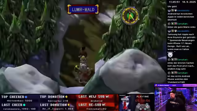 01:32:04Elena hat ein seltsames Erlebnis, das kein Traum war. Der Tag der Finsternis rückt näher, Valmars Mond nimmt mit seinem Zorn zu und der Finsterling sammelt wieder seine Kraft. Sie sind auf den Granaklippen gelandet und laufen in Richtung des Sandheimgebirges zur Kathedrale. Es wird ein Yeti bekämpft und festgestellt, dass Feuer die Eis-Yetis nicht mögen. Elena verursacht wenig Schaden. Es werden verschiedene Gegenstände gefunden, darunter ein Bebenstein und Lumia Blumen, die 25 MP wiederherstellen. Es wird überlegt, wie man an den letzten Buff kommt und ob man dafür alles in einem Buch maxen muss. MAG steht für Magic Ability, die die Fähigkeit zu magischen Angriffen anzeigt. Es wird festgestellt, dass einige Charaktere drei Slots für Ausrüstung haben, was als "krass" bezeichnet wird. Es werden Piratenring und Stürmen ausgerüstet. Es wird überlegt, wie schnell sich Ryodo jetzt über die Map bewegt.