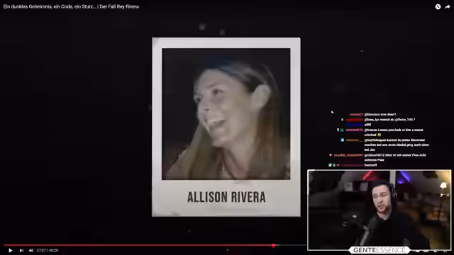 01:30:29Der Streamer beginnt mit der Reaktion auf das Video 'Ein dunkles Geheimnis, ein Code, ein Sturz. Der Fall Ray Reveria' des Kanals Insolito. Es werden die biografischen Details von Ray Rivera vorgestellt, der ein talentierter Wasserballer und Drehbuchschreiber werden wollte. Er zog für einen Job an die Ostküste, heiratete und baute ein Leben auf, bevor er unter rätselhaften Umständen starb, was der Kern des Dokumentationsvideos ist.