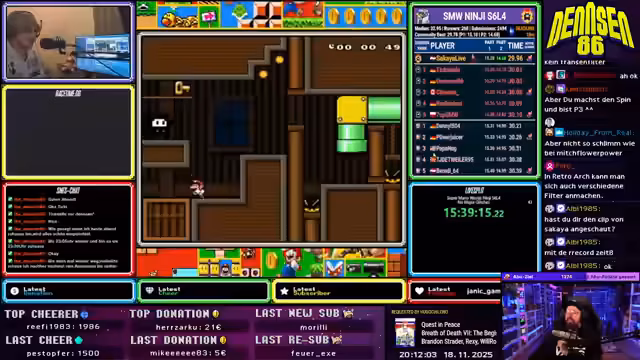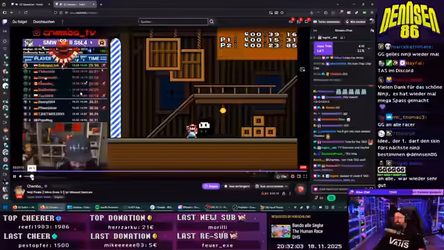 03:33:02Der Streamer hat Fotos vom Community-Treffen von Valera erhalten und ist begeistert von deren Qualität. Er überlegt, wie er diese Fotos am besten teilen kann, da viele Community-Mitglieder darauf zu sehen sind und er deren Zustimmung einholen möchte, bevor er sie öffentlich macht. Idealerweise hätte man dies bereits zu Beginn des Treffens klären sollen. Er erwähnt auch technische Probleme mit Cloudflare, die den Zugriff auf bestimmte Websites und das Starten von OBS beeinträchtigt haben. Die hohen Stromkosten für sein Setup werden thematisiert, wobei er betont, dass dies Teil seines Hobbys und Jobs ist und er sich darüber keine Gedanken machen möchte, um den Spaß nicht zu verlieren. Die Diskussion kehrt kurz zum Ninji-Level zurück, wobei der Streamer seine Frustration über bestimmte Passagen und den entscheidenden Schlüssel äußert.