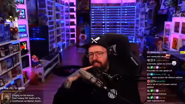 03:01:19Es werden Pläne für zukünftige Streams und Gaming-Sessions besprochen. Der Fokus liegt auf Retro-Spielen, insbesondere Gamecube- und GBA-Titeln, die auf der Röhre gespielt werden sollen. Wario World und Star Fox Assault werden als interessante Optionen genannt. Es wird überlegt, ob ein Retro-Wochenende veranstaltet werden soll. Der Streamer spricht über technische Aspekte seines Setups, einschließlich des N64-Mods und der Verwendung eines RGB-Splitters. Er erklärt, wie das Signal von der Konsole zum Röhrenbildschirm gelangt und geht auf Fragen im Chat bezüglich HDMI-Mods ein. Er erwähnt ein bevorstehendes Feigling Event auf der Cactus, das live vor Publikum stattfinden wird. Außerdem wird überlegt, ob Mega Man X für einen Speedrun gelernt werden soll und ob es morgen einen Zelda-Race geben wird. Stattdessen wird Full Throttle oder Mega Man X in Betracht gezogen. Er spricht über das Mirror Shield und wie man dorthin kommt. Er erwähnt auch, dass er Zelda-Verbot verhängen wird.
