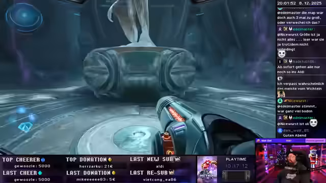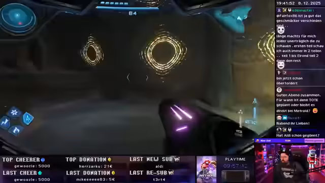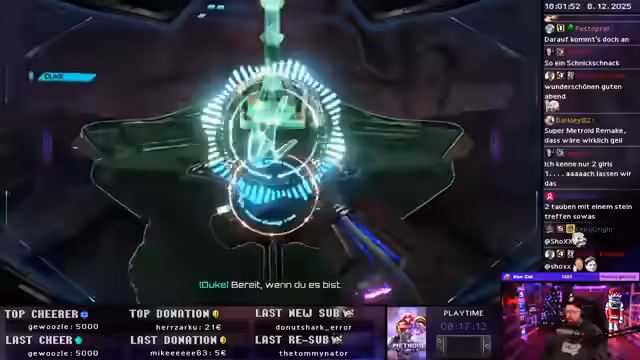 04:01:55In den späten Stream-Segmenten wird ein Pilotroboter für Einsätze am Schwellengrund vorgestellt, ausgestattet mit Mini-Raketenwerfern an den Schultern und Sonic-Boom-Bewaffnung in den Handflächen. Diese Technologie ermöglicht es, Versiegelungen zu entfernen, die mit Standardwaffen unzerstörbar sind. Der Fokus liegt auf der Einführung der Spider-Ball-Mechanik, die magnetischen Schienen anhaften und Haltepunkte nutzen lässt. Zusätzlich werden neue Interaktionen mit dem Morph-Ball erklärt, während der Streamer die Nutzung des Inventar-Minus-Menüs zur Information über Fähigkeiten demonstriert. Kritik geäußert wird am Grappling Hook, der als problematisch in jedem Metroid-Spiel beschrieben wird. Nach Erhalt dieser Fähigkeit speichert der Spieler, um neue Bereiche zu erkunden und den Spider-Ball für Schlüsselobjekte einzusetzen.