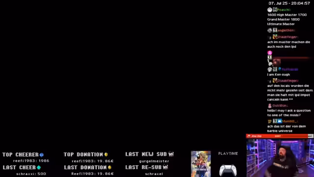 03:23:43Nach langer Pause kehrt der Streamer zu Street Fighter zurück und spielt auf höchstem Rangniveau. Er bemerkt, dass die Kenntnis der neuen Charaktere limitiert ist und das ohne viel Übung schwer fällt. Beim ersten Match in der Masterliga gibt es Soundprobleme, die ihn stören und sein Spielverhalten beeinflussen. Obwohl er seine Master-Rangpunkte verliert, ist er motiviert, weiterzuspielen und sein Skilllevel zurückzuholen.