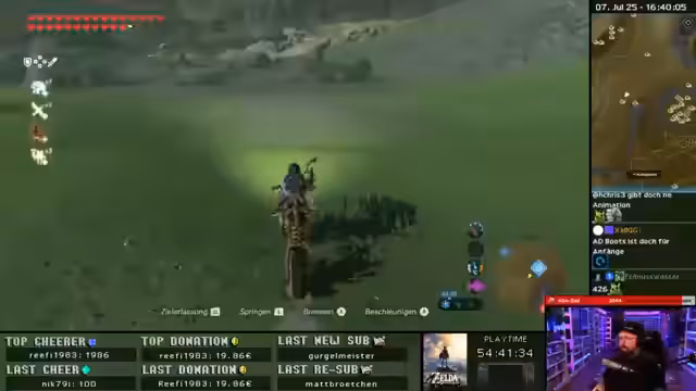 00:00:00Der Streamer beginnt mit dem Farmen von Krogs in Zelda Breath of the Wild und nutzt dafür Teleporter strategisch, um effizient zu navigieren und die Kreaturen zu sammeln. Er konzentriert sich auf das Erreichen von 500 Krogs bis 19 Uhr und verfolgt den Fortschritt genau. Dabei stößt er auf Herausforderungen wie schwierige Terrain und beschreibt die einzelnen Schritte, um jeden Krog zu finden und zu sammeln. Er erwähnt auch die Verwendung von speziellen Gegenständen wie Pfeilen und das Motorrad, um schneller vorankommen zu können.
