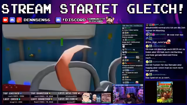 00:00:28Während des Spiels gibt es sowohl humorvolle Momente als auch Frustration. Der Streamer erlebt einen besonders schlechten Start im Ender-Bonus-Spiel und bewertet das Gameplay als "Gott-Gameplay", weil er durch ein versehentliches Springen an einer Plattform hängen bleibt. Er kommentiert die Schwierigkeit der Level und die Steuerung als "schwach" und "kantig". Zudem sammelt er verspielt Puzzlestücke, stellt aber gleichzeitig fest, dass die Level oft unfair sind.