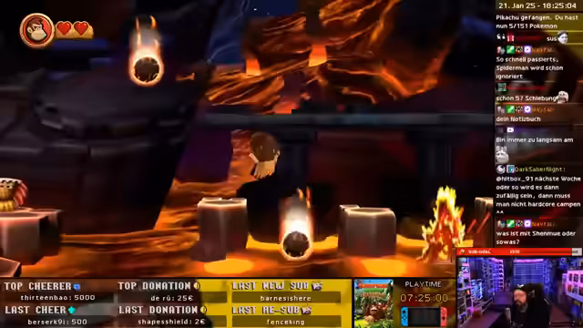 03:03:30Während der Gameplay-Sektion von "Donkey Kong Country Returns HD" betont der Streamer, wie brutal die 100%-Completion des Spiels ist. Insbesondere das Sammeln der Buchstaben für das Bonuslevel wird als Killer-Level und extrem schwierig beschrieben. Das typische "Donkey Kong"-Prinzip, dass das Spiel in den letzten Welten extrem nervig und übermäßig schwierig wird, tritt auch hier zutage, was zu erheblicher Frustration beim Streamer führt.