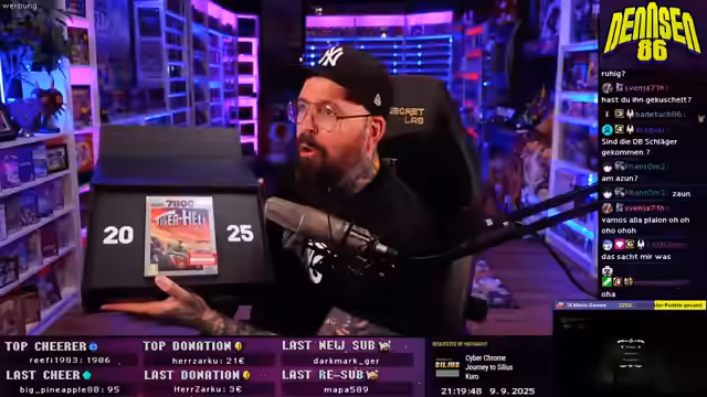 00:38:41Es wird ein gemeinsamer Stream mit Dingo angekündigt, bei dem Pokémon gespielt wird. Der Stream wird Quality of Life Verbesserungen bieten, wie einen gemeinsamen Chat im Overlay und gleichzeitige Anzeige beider Cams und Gameplays. Dingo wird im Schleimock-Cosplay sein. Es wird eine Wette angekündigt, bei der Gamedill-Charaktere ohne Spielehilfe erraten werden sollen. Später im Stream wird Gamble gespielt. Es wird überlegt, ein altes Overlay-Design wiederzuverwenden, da es gut gefallen hat. Ab 20 Uhr sind Zuschauer mit Fackeln und Mistgabeln am Zaun willkommen. Es wird geplant, einen Livestream zu starten, um auf den Zaun aufmerksam zu machen. Es soll ein Bobbycar Weltmeisterschaft Livestream mit Dennis gemacht werden.