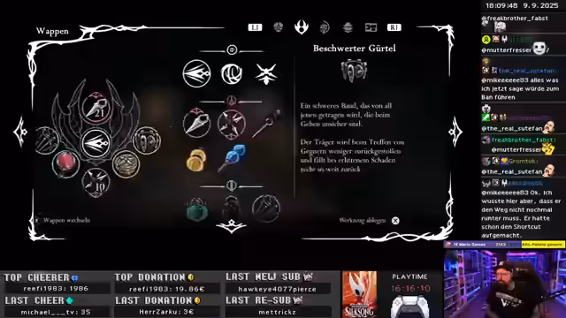 04:06:32Es beginnt mit dem Lösen eines Rätsels, das als episch empfunden wird und zum Erhalt der Melodie des Architekten führt, einem Teil der Dreifachmelodie. Der Streamer kehrt zurück und nutzt neu erlernte Fähigkeiten, um zuvor unzugängliche Bereiche zu erreichen, wie beispielsweise das Überleben auf Stacheln nach 17 Stunden Spielzeit. Nach dem Besuch einer Bank wird die Melodie gespielt, was zu einer Zwischensequenz führt. Anschließend folgt ein Bosskampf, der als herausfordernd und unterhaltsam beschrieben wird. Der Streamer lobt das Design des Bosses und seine Schwierigkeit, die jedoch fair bleibt. Nach dem Sieg über den Boss folgen kryptische Sprüche und Hinweise auf die weitere Handlung, einschließlich einer Audienz bei der heiligen Mutter. Die Quest führt den Streamer zu neuen Gebieten, in denen er auf Rätsel und optionale Herausforderungen stößt. Der Streamer experimentiert mit verschiedenen Waffen und Fähigkeiten, um die beste Strategie für die neuen Herausforderungen zu finden. Es wird auch die Entdeckung eines neuen Wappens erwähnt, das die Nadelangriffe im fokussierten Zustand verstärkt.