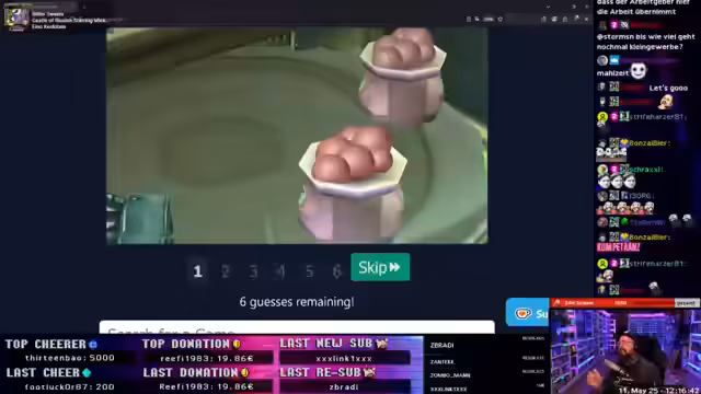 00:08:52Nach den Steuer-Themen startet eine interaktive Runde, bei der der Streamer Spiel-Titel erraten soll. Die Zuschauer geben Hinweise, während er sich an den Bildern festbeißt. Er erkennt einige Spiele sofort, wie Jack & Daxter und Battletoads, bei anderen hat er Schwierigkeiten. Bei einem Spiel mit einer hohen Metacritik-Wertung vermutet er fälschlicherweise Grand Theft Auto, bevor es sich als Red Dead Redemption herausstellt. Die Runde endet gemischt mit schnellen und langwierigen Erraten.