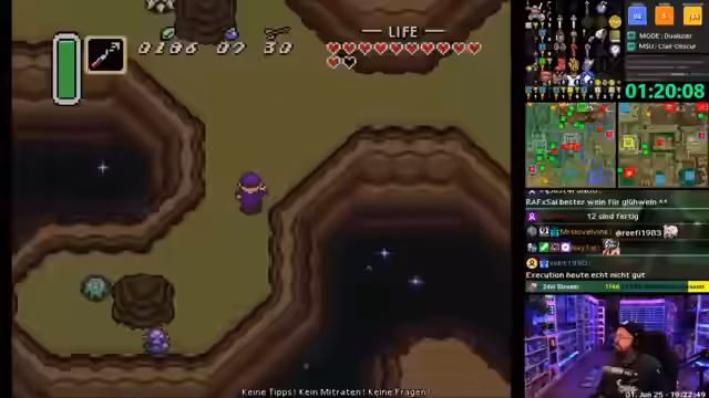 Es wurde die Wiederaufnahme einer Streaming-Aktivität nach einer längeren Pause festgehalten. Das Hauptaugenmerk lag auf einem emotional herausfordernden Versuch, einen Speedrun in Super Mario 64 zu vollenden, der von starker Frustration geprägt war. Parallel dazu wurde zu einem Duell im Spiel Zelda: Tears of the Kingdom gewechselt.
