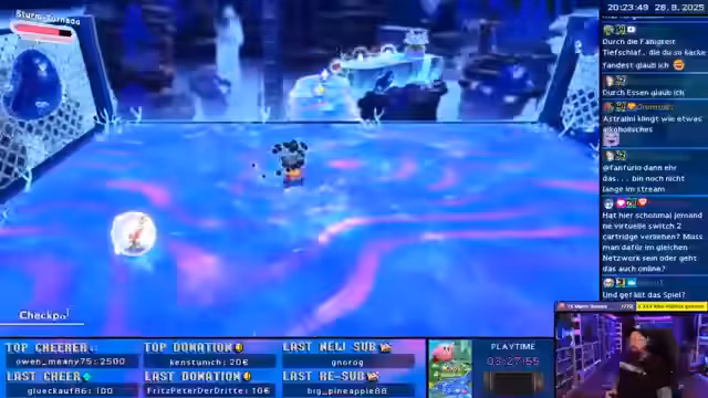 03:16:38Das Hauptaugenmerk liegt auf einem Live-Playthrough von 'Kirby und das Vergessene Land'. Der Streamer sammelt versteckte Astralinis, kämpft gegen Bosse und stellt fest, dass das Spiel anspruchsvoller wird. Nachdem ein reguläres Level beendet ist, wird das Spiel gespeichert und ein Schlüssel für einen zukünftigen Bereich erhalten. Der Streamer beendet das Kirby-Spiel und kündigt an, es später zu beenden, während er nun zum nächsten Spiel wechselt.
