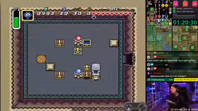 03:39:09Das Gameplay von Zelda ALTTPR steht im Mittelpunkt. Der Streamer verfolgt eine klare Strategie, um wichtige Gegenstände wie 'Flippers' frühzeitig zu finden, was ihn zu unerwarteten Orten führt. Er beklagt das 'geile Play', als er die Flippers spät im Spiel entdeckt. Gleichzeitig versucht er, 'Boots' in der Light World zu finden, was den Spielverlauf erheblich beeinflusst und sich als suboptimale Route herausstellt.