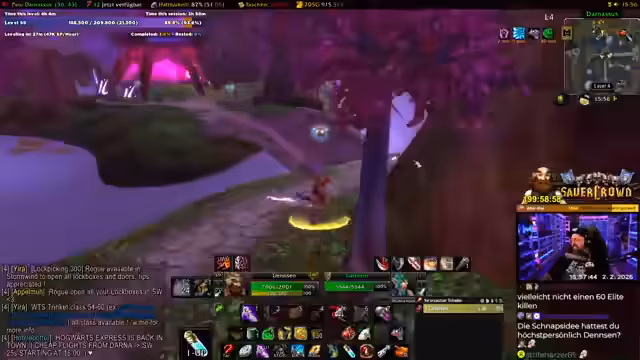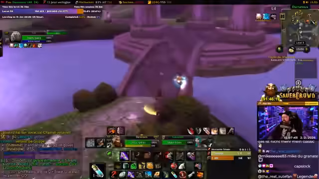 04:36:58Im Endspurt zum Erreichen von Level 60 grindet der Streamer im südlichen Teufelswald. Er kommt zu dem Schluss, dass es 'crazy' ist, nach 200 Stunden das Leveln zu beenden. Er kündigt an, den Abend in World of Warcraft zu bleiben und sich auf die Veröffentlichung von Dragon Quest 7: Reimagined zu freuen, die für den selben Tag geplant ist. Er bewertet sein früheres Level-Erlebnis im Event als schmerzhafter im Vergleich zu den heutigen, schnelleren Methoden.