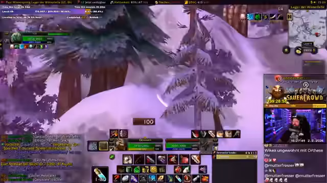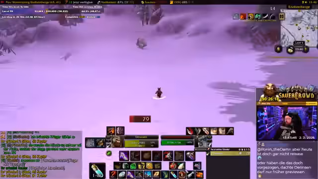 00:00:00Der Stream beginnt mit der Ankunft des Streamers in Winterspring, einem Gebiet in World of Warcraft, das er für das Erreichen von Level 60 nutzt. Er hat 36% des Levels durch das sogenannte 'Rested XP' bereits geschafft und nutzt nun Weltbuffs, um seine Chancen auf ein erfolgreiches Level-up zu maximieren. Er erwähnt, dass er Buffs wie den Mungo, Magnuswasser und andere anwendet und sich darauf vorbereitet, die Risiken des Gebietes einzugehen. Seine Stimmung ist gemischt aus Konzentration auf das Ziel und der Freude am Spiel, obwohl er betont, dass ein Tod auf Level 59 für ihn besonders bitter wäre.