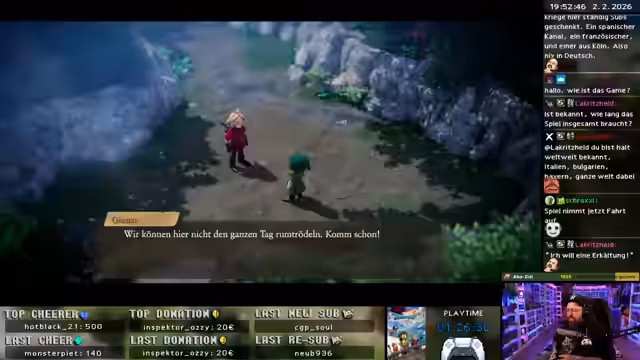 01:50:31Der Stream ist geprägt von starker Interaktion mit der Community. Viewers geben Tipps, insbesondere zum Controller-Setup, und zur Kommunikation im Spiel. Der Streamer ist bei der Annahme von Ratschlägen sehr offen. Neben dem Gaming-Geschehen platzt er immer wieder über Alltagsereignisse wie die Benutzung des neuen Scan-and-Go-Systems bei Lidl und die unangenehme Erfahrung beim Abholen eines Pakets. Diese persönlichen Anekdoten unterbrechen den Hauptinhalt und schaffen eine persönliche, unmittelbare Atmosphäre.