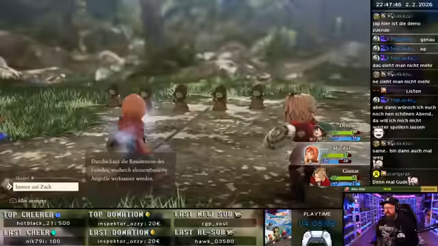 08:38:16Eilkraut. das ist auch Overworld-Style. Ah, und hier kann ich speichern wahrscheinlich. Der Pirnei wurde vollständig wiederhergestellt. Eine unheimliche Stimme aus der Ferne. Alle verirrten Schäflein sind hier willkommen. kann ich euch helfen. Speichern. Herrschaft, wir haben Besuch. Was zum Kuckuck wollt ihr denn zu dieser Zeit hier, wenn ihr in die Miete. Es gibt auf jeden Fall Berufe. Bis jetzt noch nicht, Nefal, aber würde mich wundern. Was heißt das X? Fu-Kämpfer, ne? sieht man sich wieder. Was wollt ihr denn an einem Ort wie diesem? Helga, ihr seid es. Das trifft sich ganz.