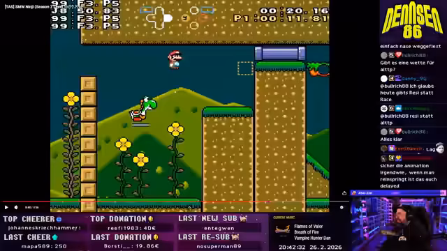 00:00:00Der Stream wird mit dem Ziel gestartet, den Level-60-Gegner im SNES-Spiel mit einem SNES-Controller zu besiegen. Danach folgt ein Ankündigungsblock: Der Streamer plant für den späten Abend um 21 Uhr ein gemeinsames Twitch-Event mit dem Spiel Resident Evil 9: Requiem. Für den Folgetag ist um 10 Uhr ein Midnight Release für ein neues Spiel geplant, bei dem der Fokus auf dem Aufbau einer Gilde liegt.