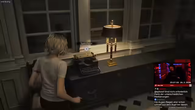 06:11:47Der Streamer taucht tiefer in die Spielmechaniken ein und löst erste Rätsel, wie das Öffnen eines Schranks mit einem Symbol, das er im Labor findet. Er nutzt das Craftingsystem, um aus Blut und Metallteilen neue Pistolenmunition herzustellen, was ihm etwas Erleichterung in der Munitionssituation bringt. Er erkundet den Westflügel des Sanatoriums, sammelt Münzen und trifft auf blutsaugende Feinde. Dabei wird ihm die ständige Bedrohung und der Mangel an Ruhezeiten deutlich.