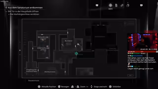 05:16:44Nach der dramatischen Eröffnung konzentriert sich der Streamer auf die grundlegenden Überlebensmechaniken. Er erkundet das Sanatorium, sammelt Objekte wie eine Taschenlampe und Medizin und lernt das Inventarsystem kennen, das begrenzt ist. Er stellt fest, dass Munition extrem knapp ist, was den Horrorfaktor erhöht. Zudem entdeckt er ein Blutentnahmegerät mit dem er infiziertes Blut sammeln und durch Analyse im Mikroskop neue Rezepte für die Herstellung von Gegenständen wie Munition erlangen kann.