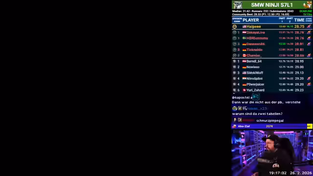 03:06:40Der Ninji-Grind geht weiter und die Teilnehmerzahl steigt auf 234 aus 13 Ländern, was den Erfolg des Events unterstreicht. Die Master-Rank-Plätze sind hart umkämpft, mit Spielern wie Hypie und Botinator. Der Streamer preist die Qualität des Event-Bots und der Timer. Obwohl die aktuelle Zeit des Streamers nicht Spitze ist, zeigt er sich beeindruckt von der internationalen Teilnahme und der hohen Commitment-Level der Spieler, die teilweise weniger als drei Stunden für die Top-Plätze benötigt haben.