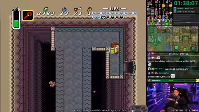 04:46:53Das Gameplay konzentriert sich auf eine Dungeon-Lauf, in dem der Streamer trotz knapper Ressourcen versucht, den Boss ohne Treffer zu besiegen. Er trifft strategische Entscheidungen, welche Dungeons und Items er priorisieren muss, um weiterzukommen. Die Suche nach bestimmten Gegenständen wie 'Titans' wird als entscheidend für den weiteren Verlauf des Laufs identifiziert, was zu knappen Momenten führt.